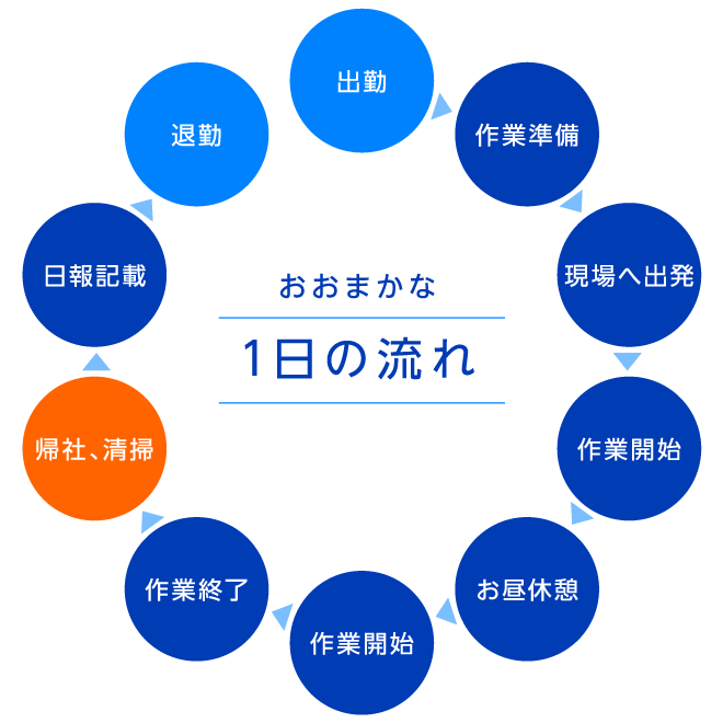 弊社は、従業員一同のびのびと気軽に話し合えるアットホームな会社です。 福利厚生は無論の事、職場環境はキレイを心掛け、更に現場にもその精神で対応し、お客様に満足いただけるサービスを提供しています。 上司・先輩方は、優しく時には厳しくもありますが、自分の能力を最大限に引き上げてもらえて、様々な事を学び生かしていける職場となってます。